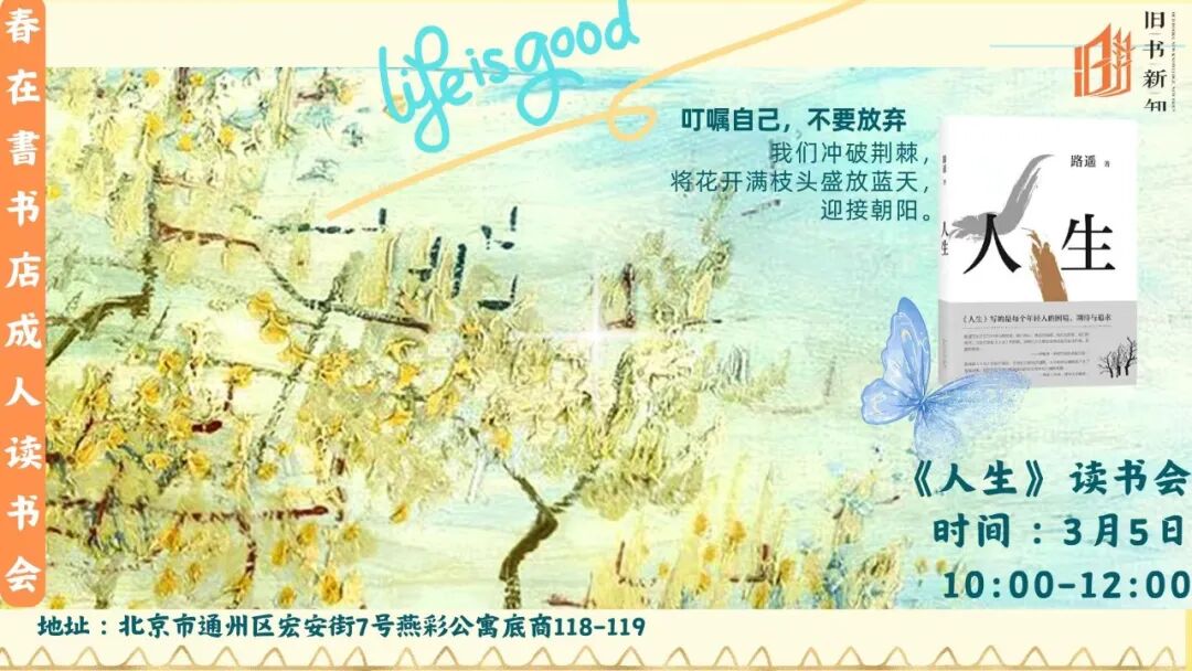 春在書书店 经典文学《人生》读书会 《人生》是茅盾文学奖得主路遥的代表作,以陕北的城乡生活为背景,叙述了知识青年高加林回到家乡又离开家乡、再回归家乡的人生历程。它讲述了一个年轻人面临爱情与事业、理想与现实间的艰难选择,具有巨大的共情力量,说出了每个人,尤其是年轻人的困境、期待与追求。《人生》给予对生活失望的人以莫大的安慰与力量,这是路遥的《人生》,也是我们每个人的人生。 活动时间:3月5日 10:00-12:00 参与方式:线下活动 活动地址:通州区宏安街7号燕彩公寓底商118-119