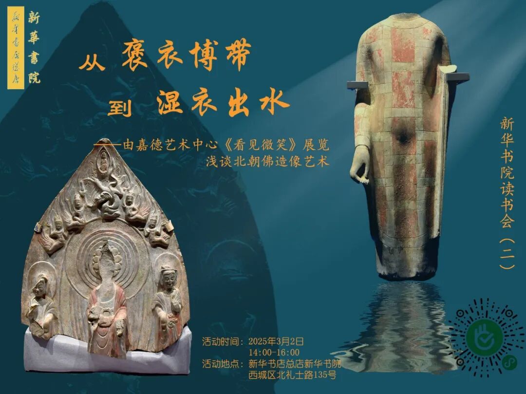 新华书店总店城市书房 从“褒衣博带”到“湿衣出水”——由嘉德艺术中心《看见微笑》展览浅谈北朝佛造像艺术 佛教造像艺术是我国雕塑艺术中非常重要的一部分,不同时代的佛造像艺术有着鲜明的时代特征,南北朝时期尤为重要,起到了承上启下的作用。目前嘉德艺术中心正在展出的五十余件文物,呈现了北朝时期青州地区造像艺术风格的特征以及变化。本次讲座希望通过对于北朝造像艺术风格的梳理,深入探讨其背后的文化交融与历史脉络。 活动时间:3月2日 14:00-16:00 参与方式:线下活动 活动地址:西城区北礼士路135号院新华书店总店