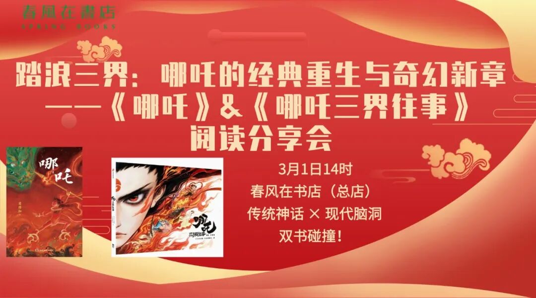 春风在书店 踏浪三界:哪吒的经典重生与奇幻新章——《哪吒》&《哪吒三界往事》阅读分享会 他是陈塘关的英雄少年,天生神力,手持风火轮和混天绫,英勇无敌。他性格勇敢、叛逆,不畏强权,故事传遍四海,深受人们喜爱——他就是中国文化中的传奇英雄“哪吒”。3月1日,春风在书店邀您一起阅读关于哪吒的两本经典畅销书籍:《哪吒》&《哪吒三界往事》,带领大家深入剖析这两本佳作,从哪吒闹海的英勇无畏,到其在三界的传奇经历,一同感受神话故事的魅力。 活动时间:3月1日 14:00-15:30 参与方式:线下活动 活动地址:通州区宋庄镇小堡村小堡南街63号