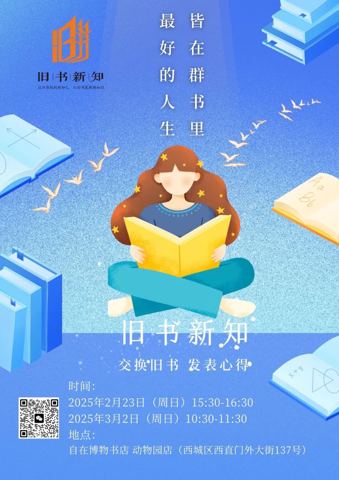 自在博物书店动物园店 【旧书新知】好书交换+读书分享会 想让家中闲置的旧书重焕生机吗?快来自在博物书店参加“好书交换+读书分享会”活动吧!活动期间,大家可将学校推荐的中小学生必读书目里的旧书捐赠出来。小朋友们还能上台分享一本自己捐赠的用于交换的图书,尽情讲述书中的奇妙世界。分享结束后,大家就可以开启互换图书环节,为自己带回“新宝贝”。让我们一起在书香中传递知识,在交流中收获成长! 活动时间:3月2日 10:30-11:30 参与方式:线下活动 活动地址:西城区西直门外大街137号北京动物园西南门 朝阳区 北京实体书店活动预告