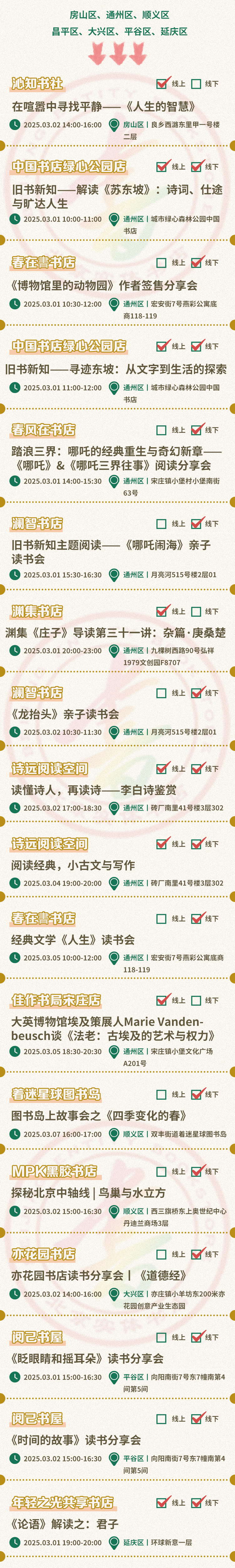三月第一周,用阅读唤醒春日灵感 | 北京实体书店活动预告(3月1日~3月...网络2025-02-28 18:55